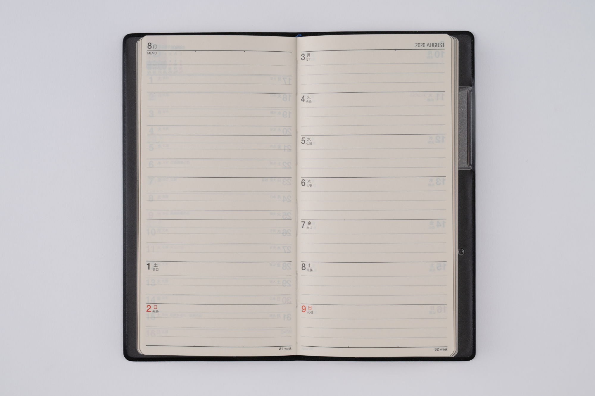 スーツのポケットにすっぽり収まる機能手帳。予定を一覧で管理したい方に