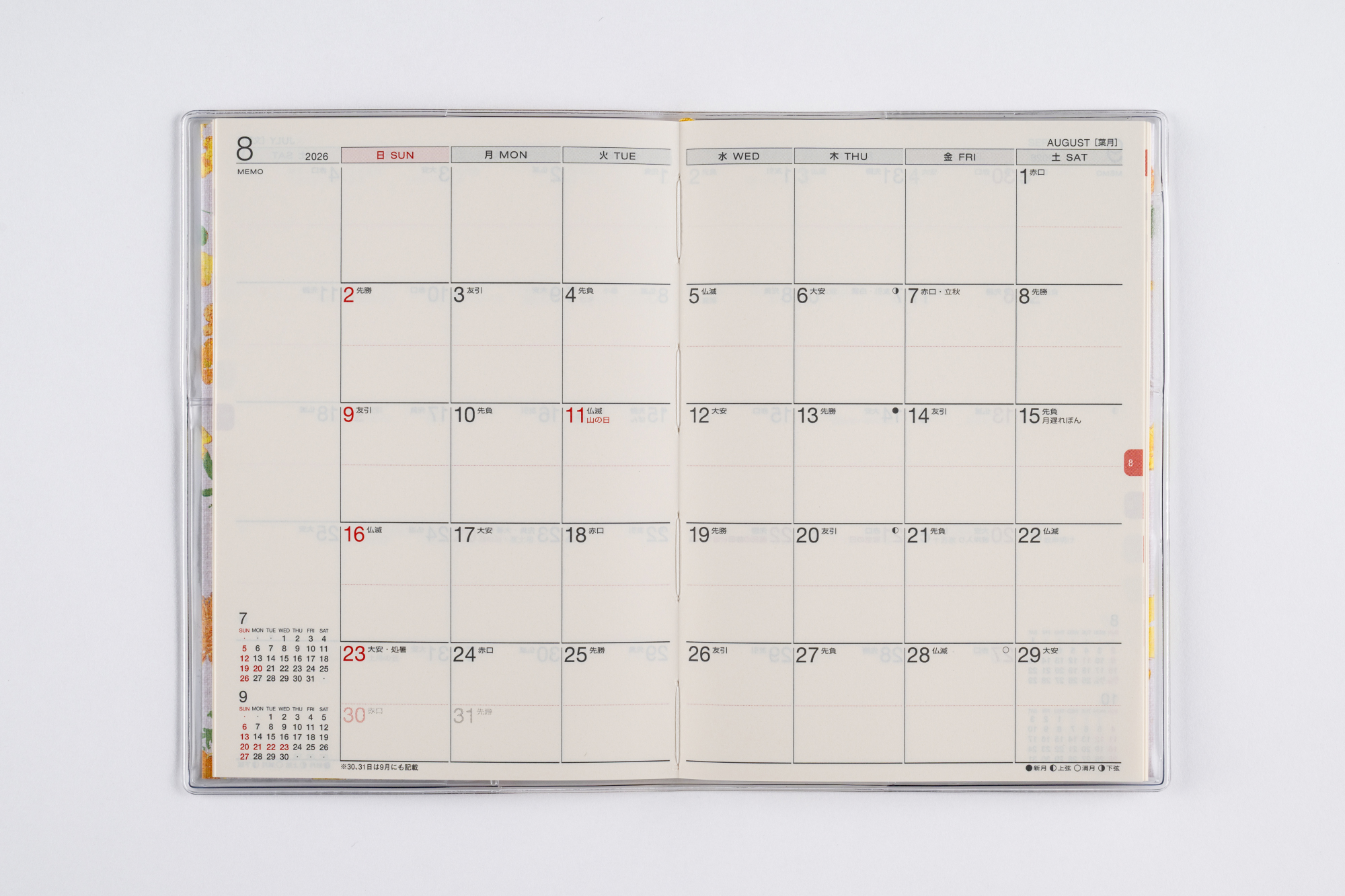巻末には横ケイメモページと、花柄の切り取りメモ付き。