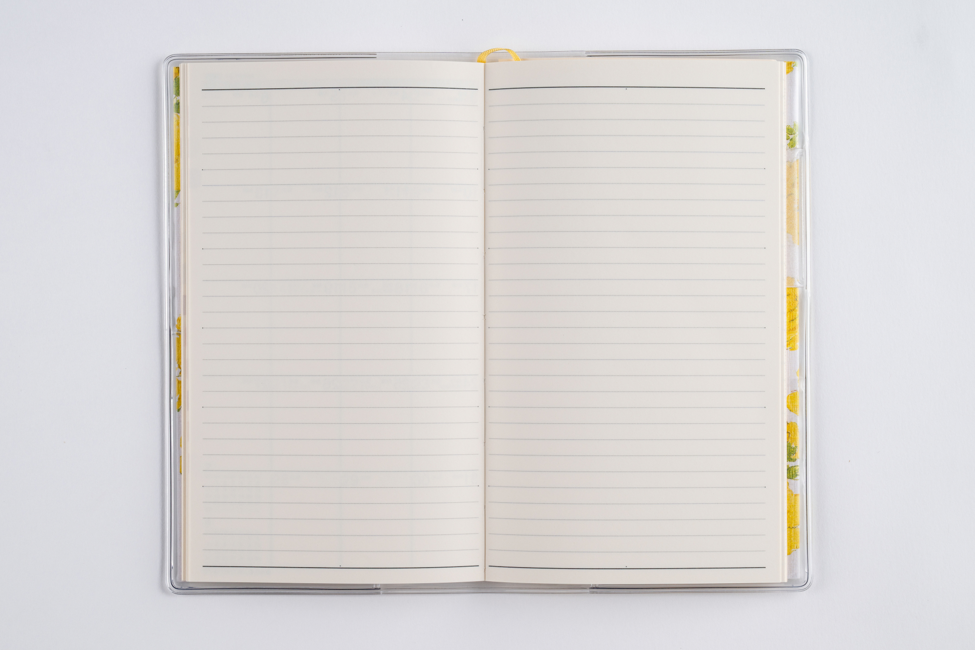 巻末には横ケイメモページ、方眼メモページ、花柄の切り取りメモ付き。