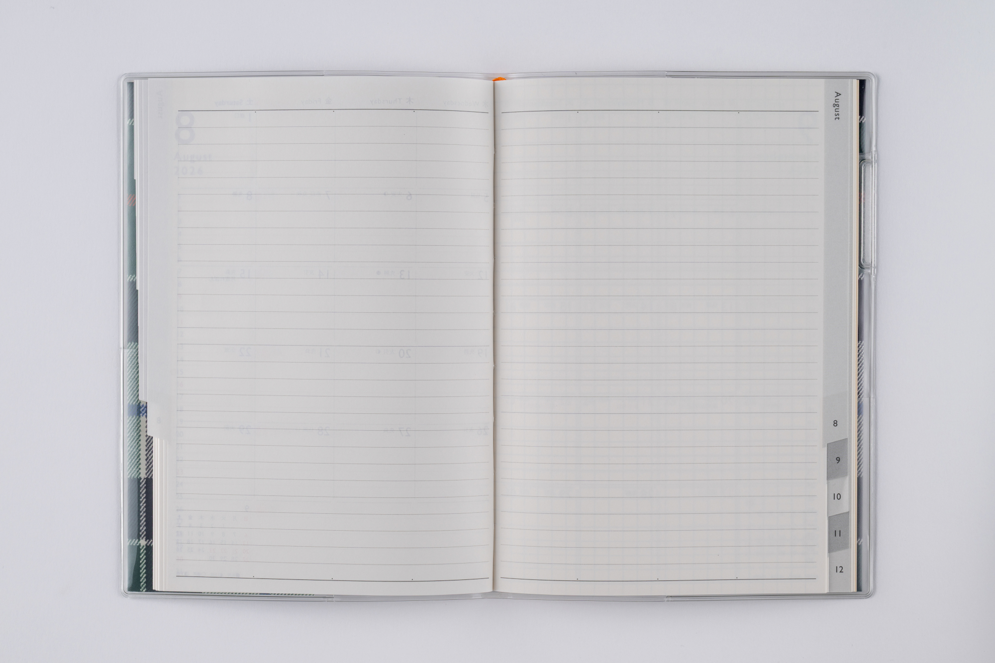 各月の後ろに、横ケイメモと方眼メモが2ページずつ付いているので、月間ページに書ききれなくても安心。