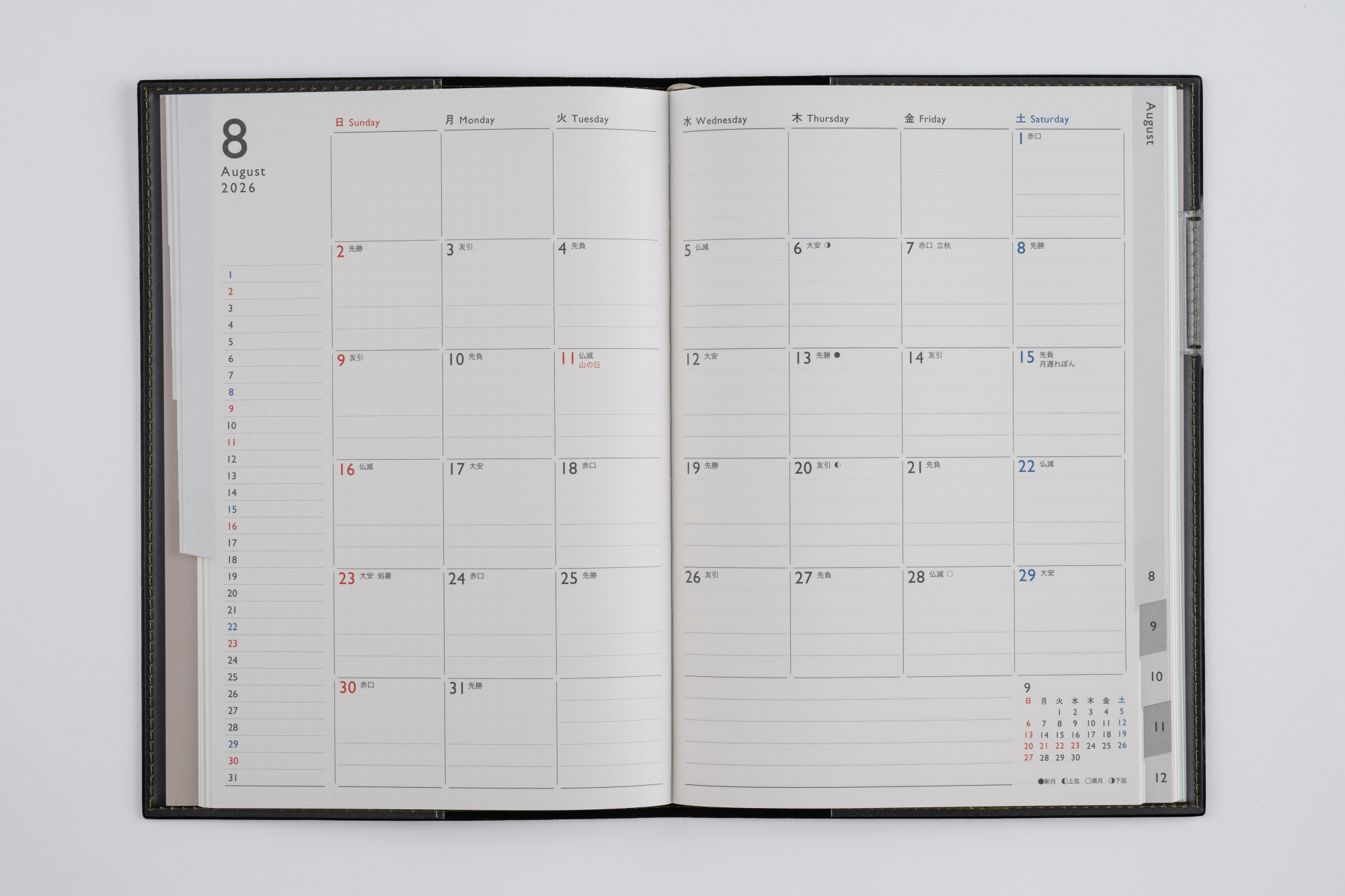 - 日曜始まり