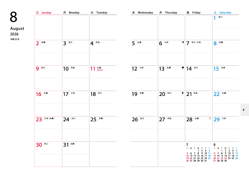 - 日曜始まり